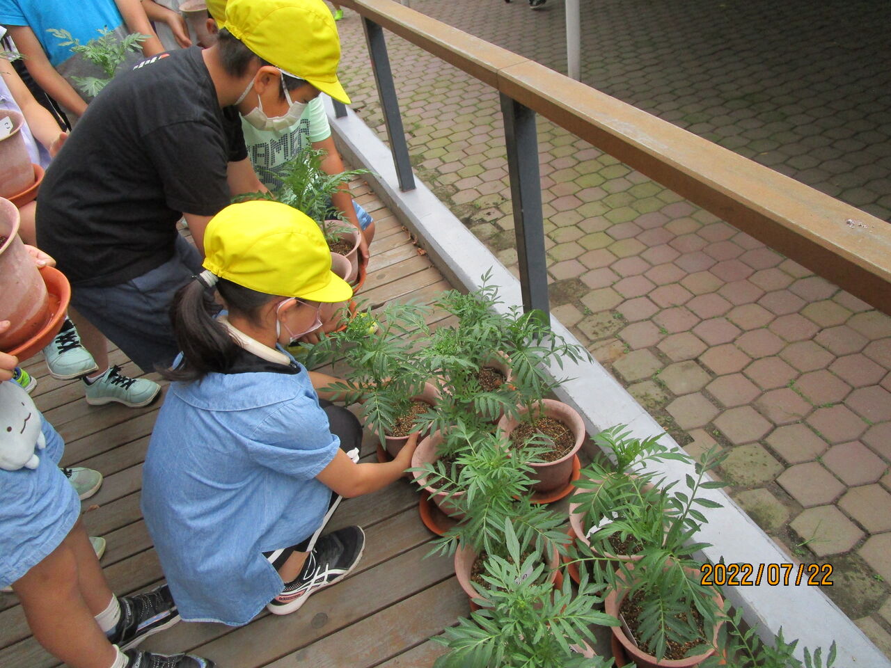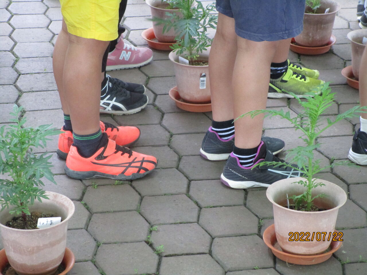 皆さんが丹精込めて育てたマリーゴールドとホウセンカです