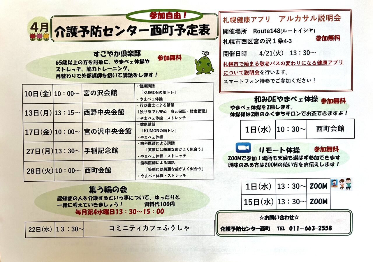 すこやか倶楽部も会場によって健康セミナーなどの内容が違います。