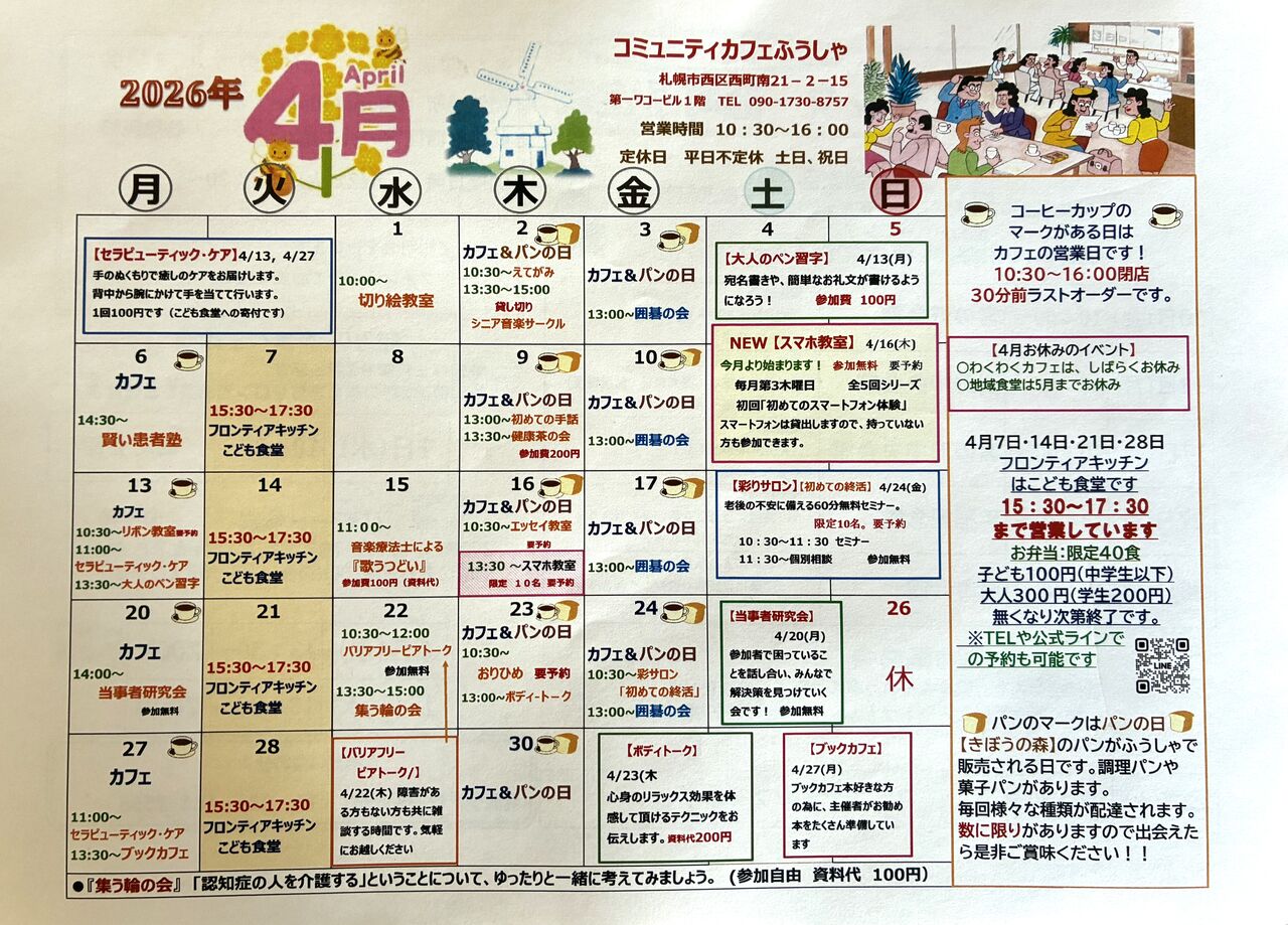 コミニティカフェふうしゃのカレンダーです